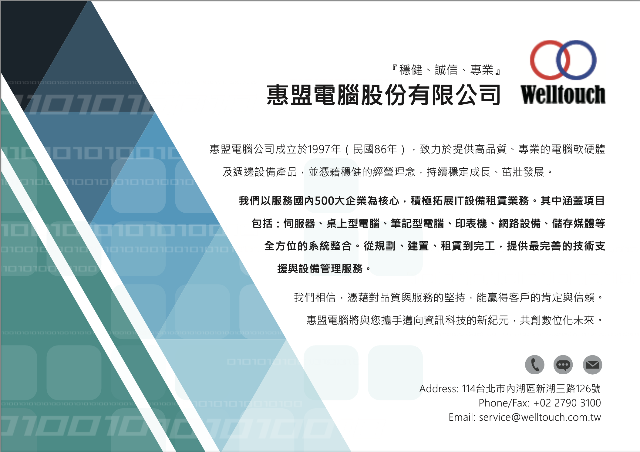 惠盟電腦提供高品質、專業的電腦軟硬體 及週邊設備產品